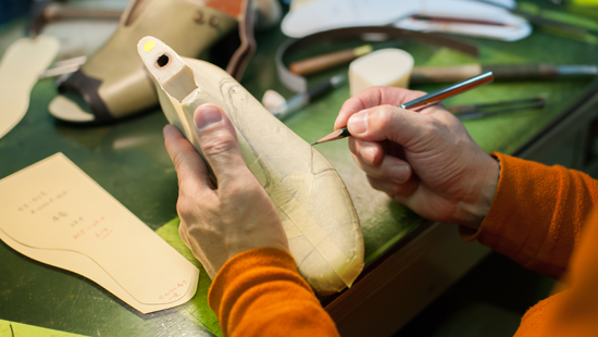 靴の爪先を、木型に合わせて